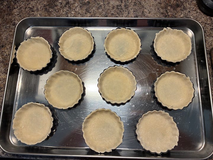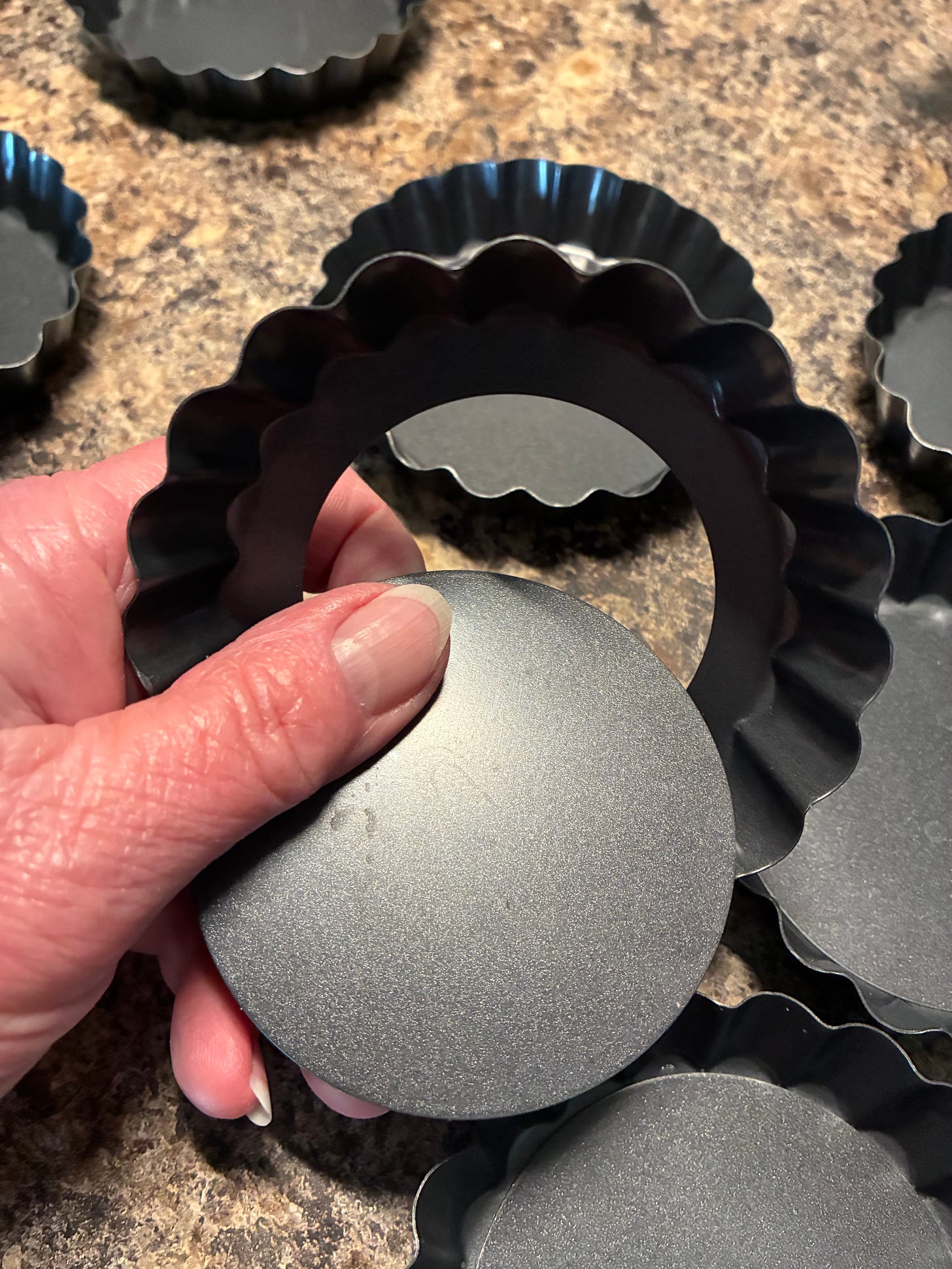 I don’t have 3” tart pans, I have 4” tart pans and only 10 of them. Arn’t they cute? The bottom come out so it’s easy to remove the tarts without busting them all up.