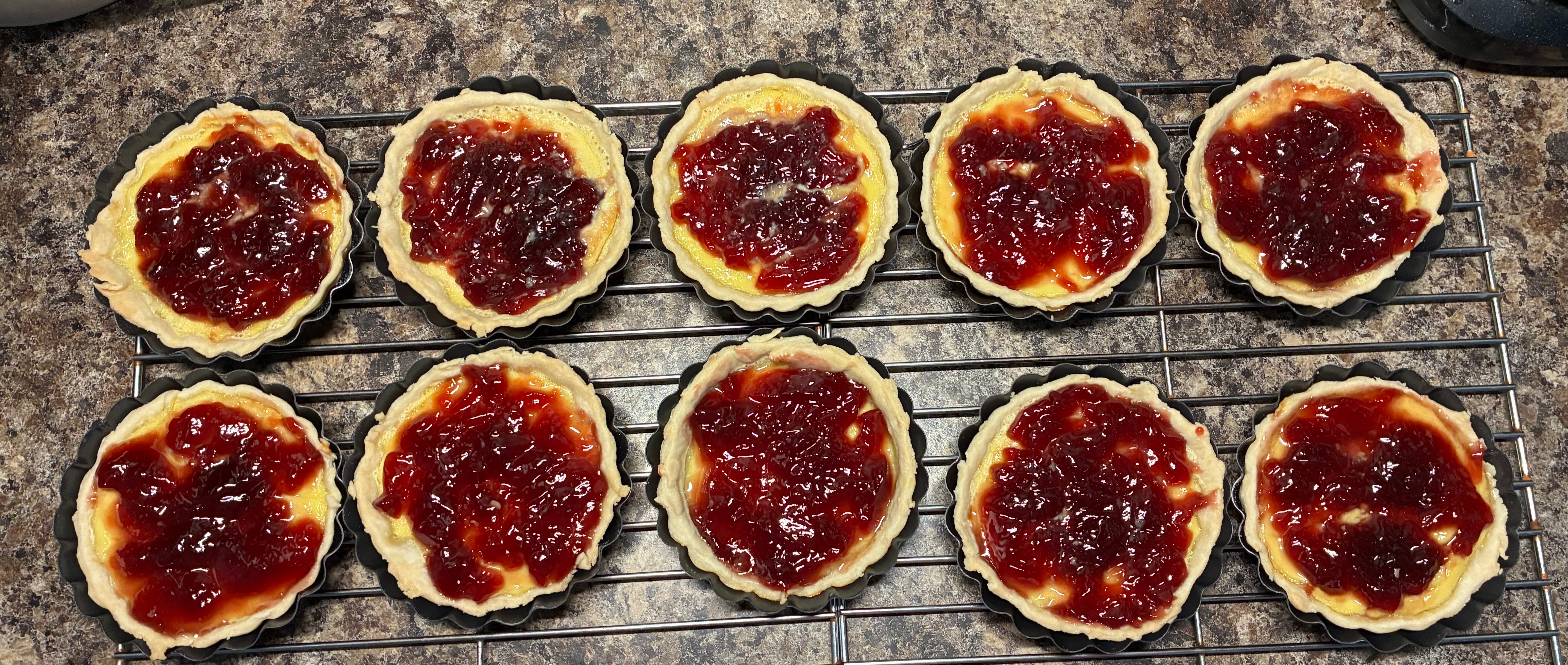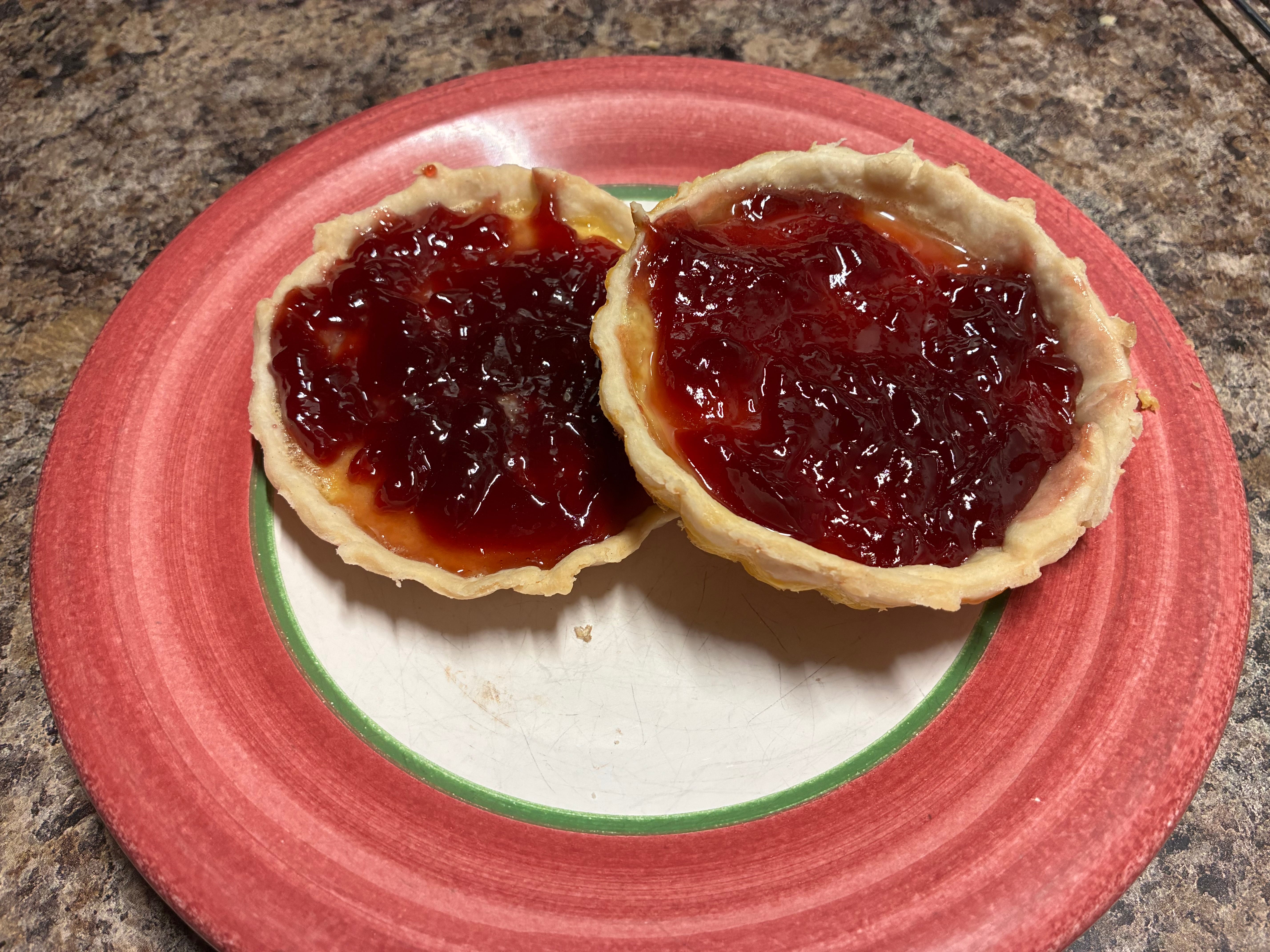 The jam. That was a problem for me. Even at room temp, it was not spreadable on the tart. I tried to warm it up, and it was not good that way either. What I should have done was to take it out of the jar and whisked it to a smooth consistency first. Either that or buy a better quality jam. My local store is really limited. They only had one kind of jam at all.