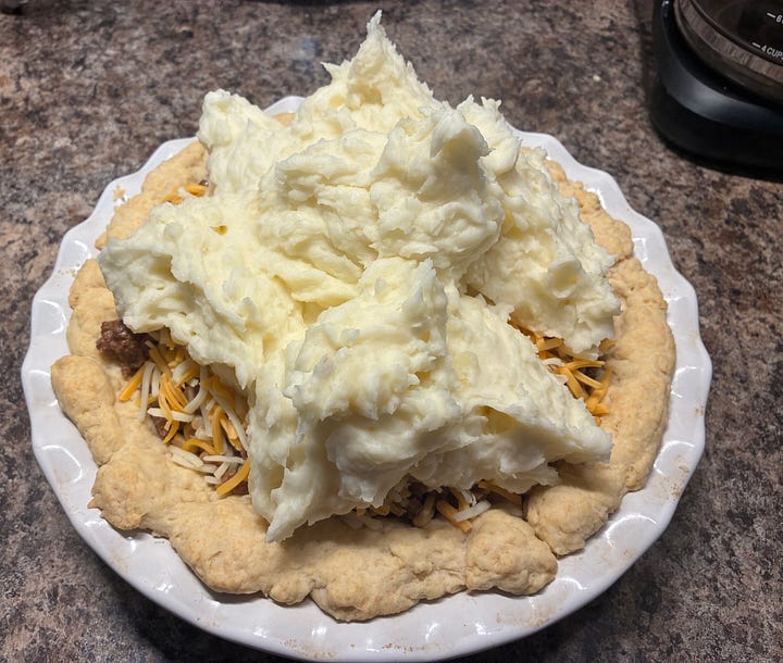In the meantime I did make a cottage pie a la Fat Turkey. One of our go-to comfort foods around here. It’s easily customizable to your tastes.