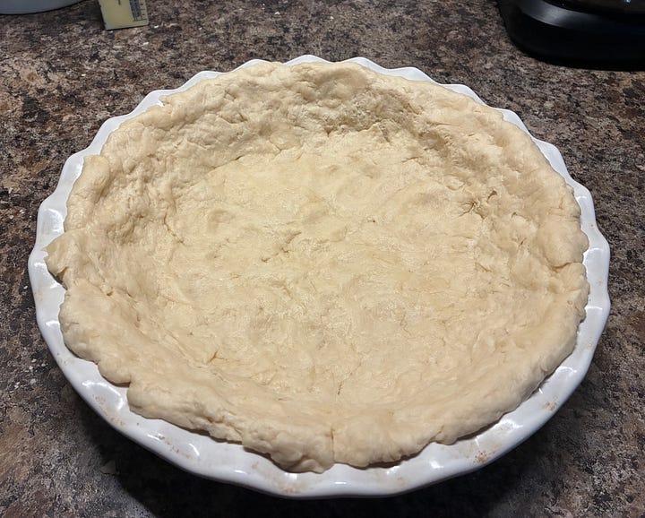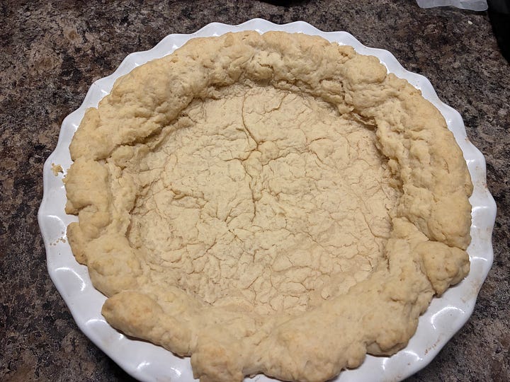 I put it into a pie plate and smash it around until the bottom and sides are covered. Bake at 350 for about 20 mins. I don’t bake it completely as it will finish baking in a bit.